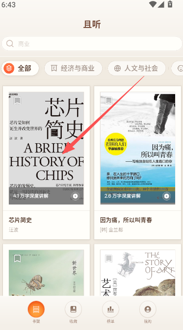 4、来到首页,选择你感兴趣的内容部分开始聆听。