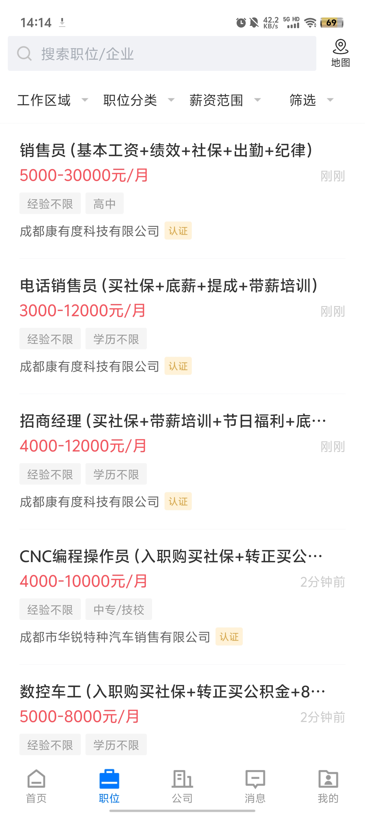 [附近职位]:搜索结果页可查看附近职位,找到离你更近的好工作;