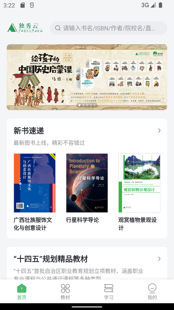 直接输入教材书名或作者名字即可一键搜索查找到你想要查找的教材资源学习。