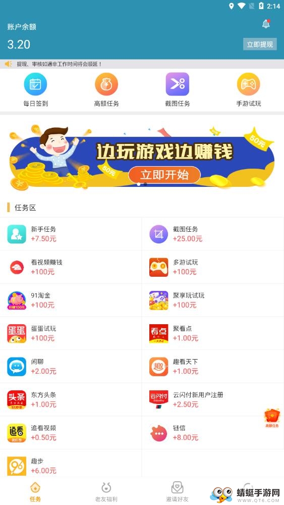1.新增看视频赚钱任务