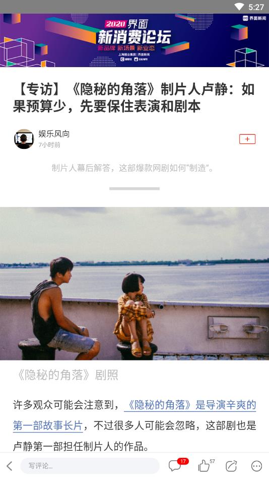 短视频集群:拥有面谈、一面、界面Vnews、蒸汽鸡等覆盖创投、娱乐、新闻、生活方式的原创短视频栏目,每日还能在此浏览全网热门短视频。