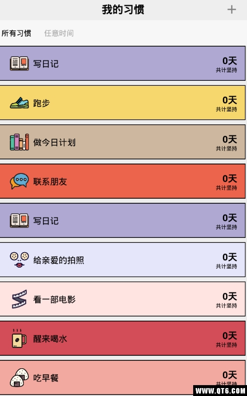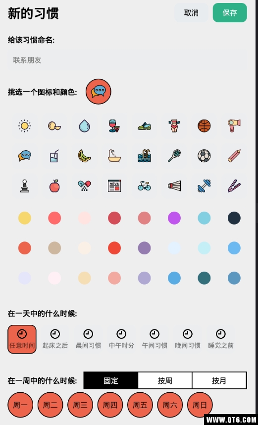 1.可以为每个习惯设置在一周内的哪几天重复,哪个时间段执行;