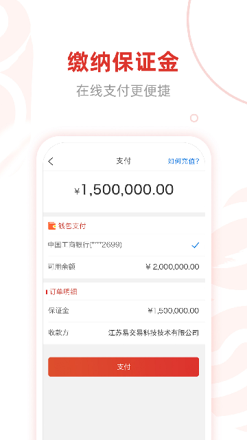 选择意向项目后,在线填写报名信息,通过“钱包支付”或绑定银行(如工商银行)缴纳保证金,无需线下跑腿,流程高效便捷。