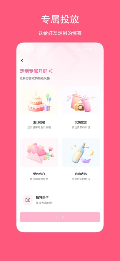 定制专属开屏:想为闺蜜的生日送上一整屏的祝福,还是向欣赏的她表达内心?该功能让你可以在app启动时,留下一份专属的温馨寄语或告白,让你的心意被看见。
