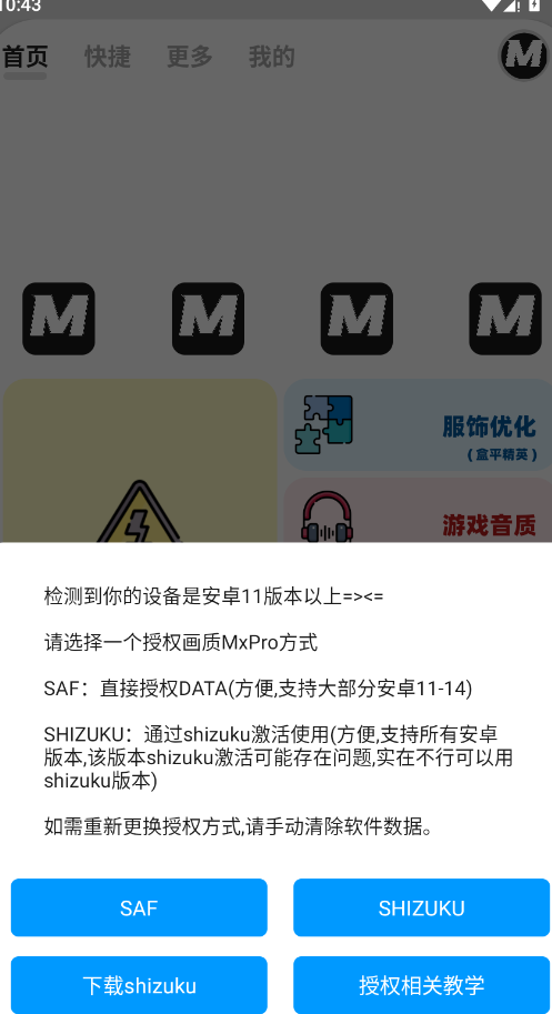 1.打开画质MXPro官方版后,主界面将展示多项画质优化功能,点击【一键解锁】即可激活高级图形设置权限。