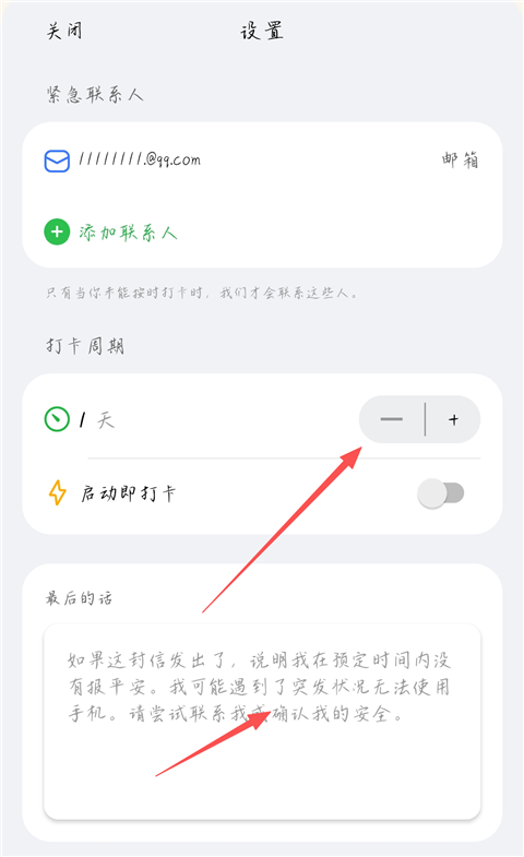 4、用户可设置打卡周期,并在下方【最后的话】中写下求助的话。