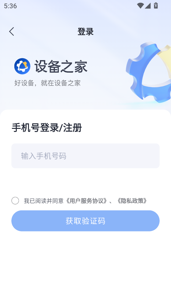 1.打开设备之家app之后,首先需要同意隐私协议。