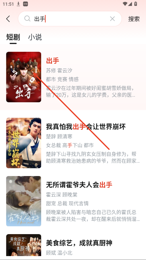 2.在框内输入你要看的短剧名字关键词。点击搜索。