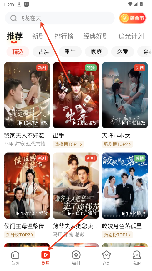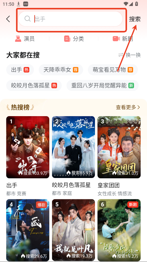 1.在剧场点击上方搜索框。