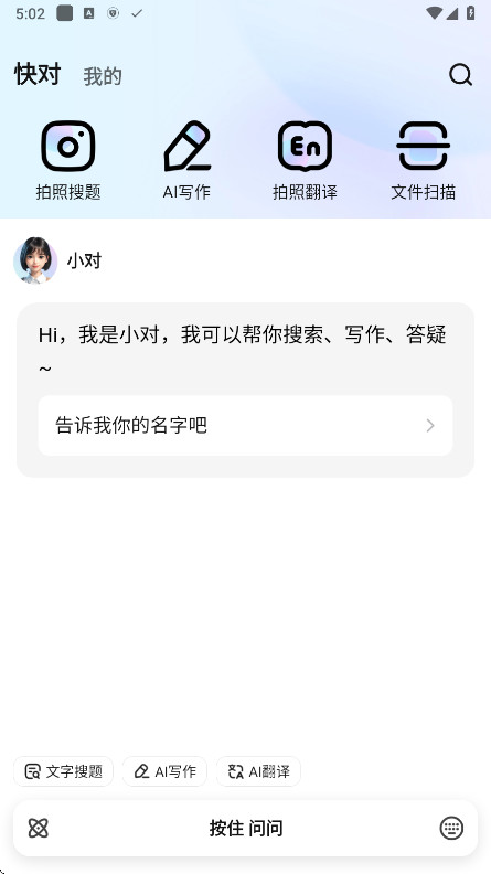 快对AI是一款专为学生打造的智能学习辅助应用,旨在提供高效便捷的学习体验。它通过先进的人工智能技术,支持题目拍照识别,帮助学生快速找到解题思路和答案。无论是数学、物理、化学等科目的题目,用户只需拍照上传,应用会自动识别并提供详细解答过程和解析。同时,快对AI还配有智能错题本,帮助学生巩固知识,提升学习效率。