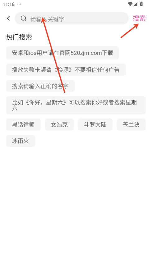 2.搜索框内输入你要看的影视剧名称,点击搜索。