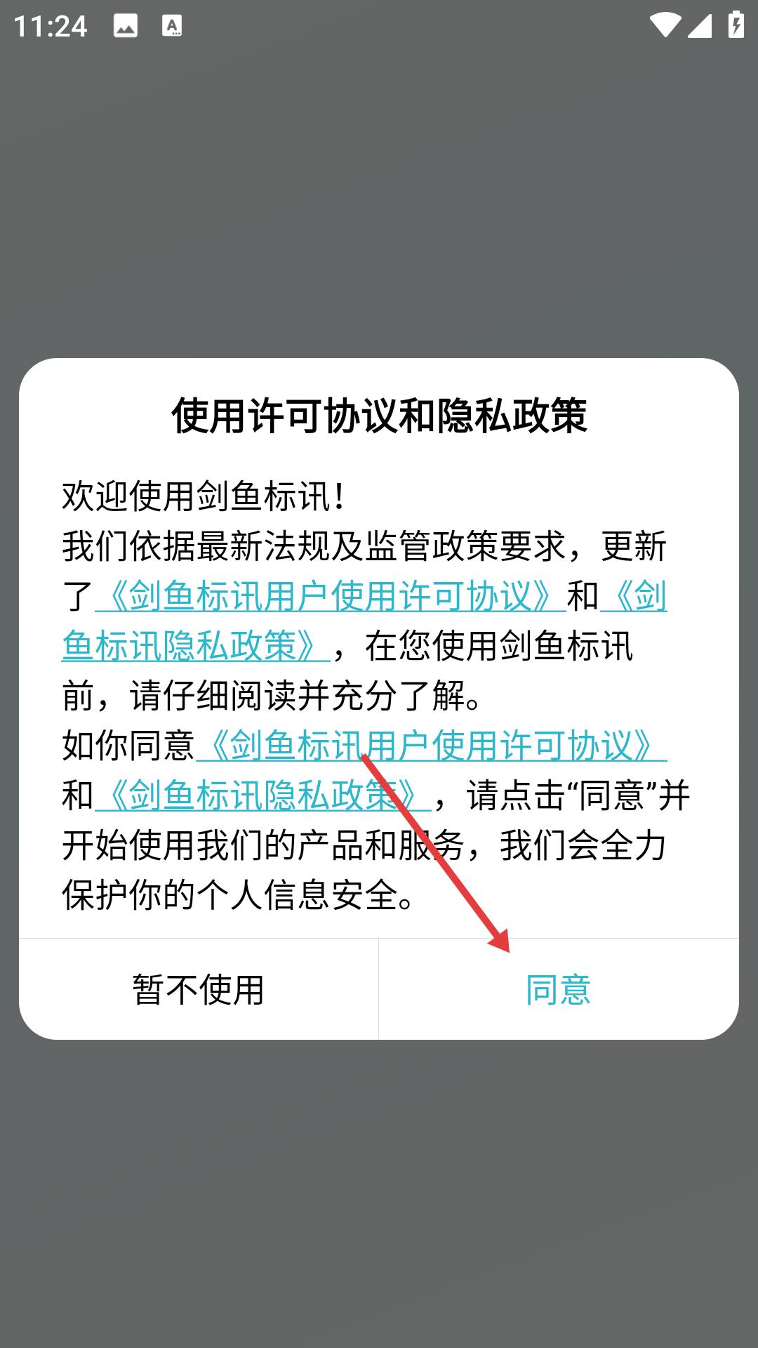 1.下载安装完成后进入,需在用户协议和隐私政策界面点击同意,接受相关条款后才能进入应用。