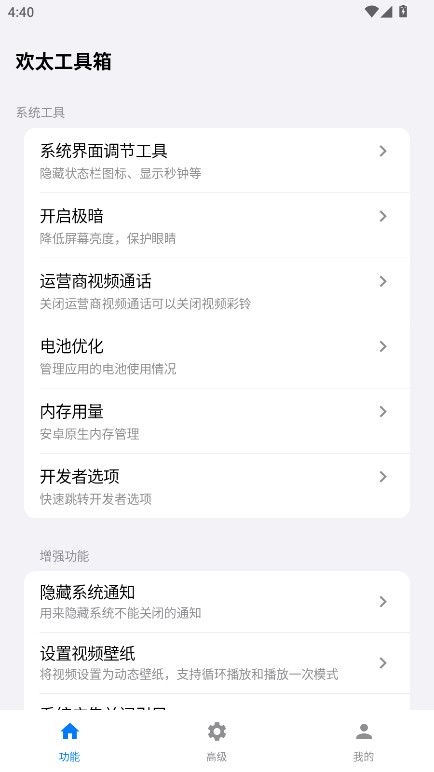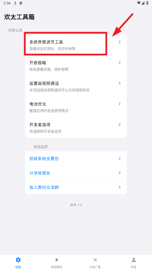 1.打开欢太工具箱,进入首页,点击选择所需功能,比如系统界面调节工具