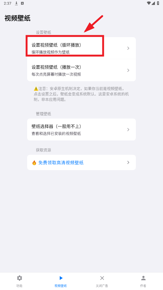 4.进入视频壁纸界面,点击可以设置视频壁纸