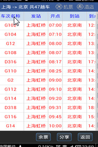 在结果展示界面,点击出现的结果页面,然后将会打开详细的车次信息。