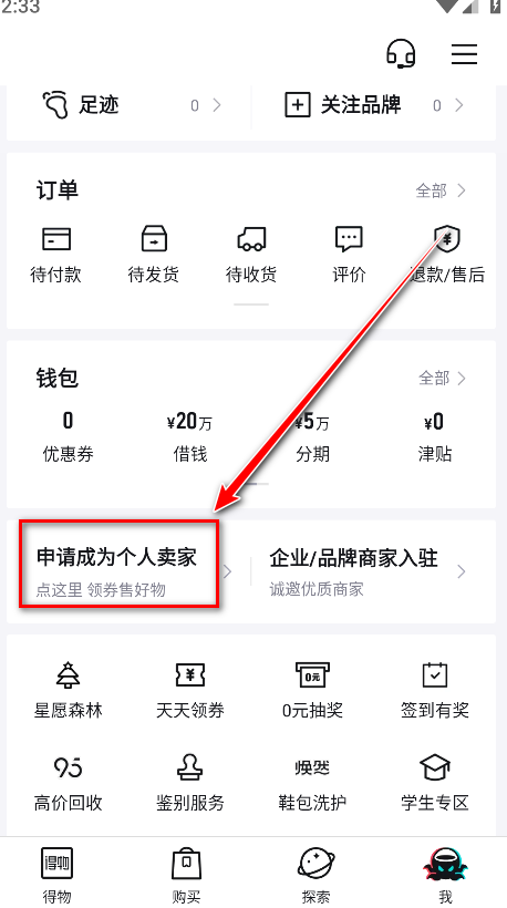 1.得物怎么卖东西其实问的就是得物怎么开店、得物怎么入驻个人卖家。打开得物,点击右下角我。