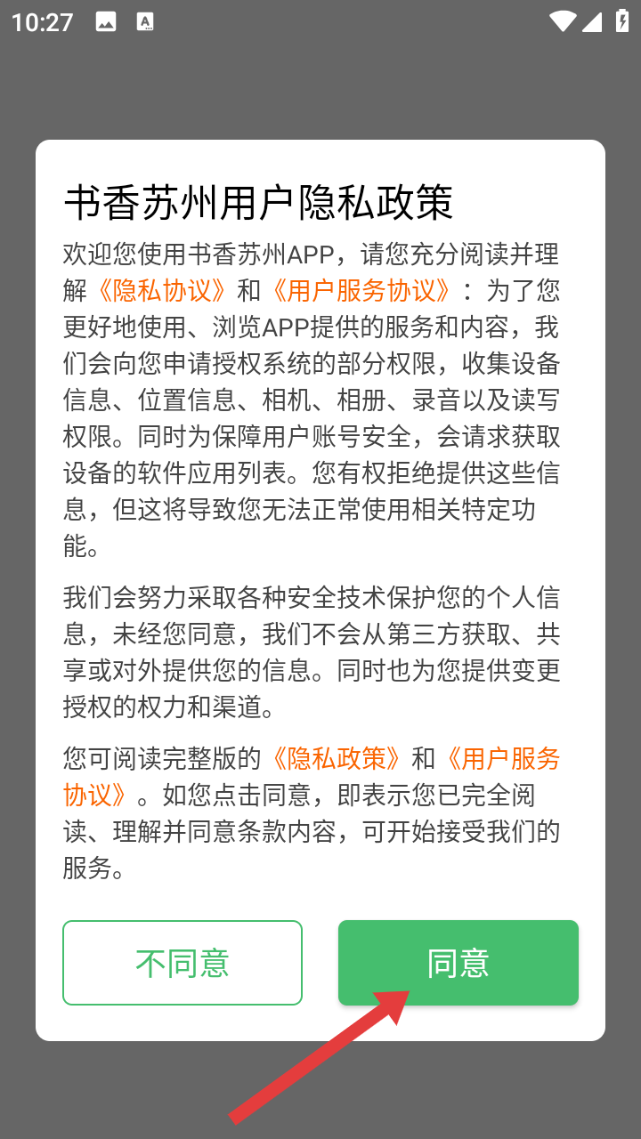 1.用户打开软件后,点击【同意】即可进入登录界面。