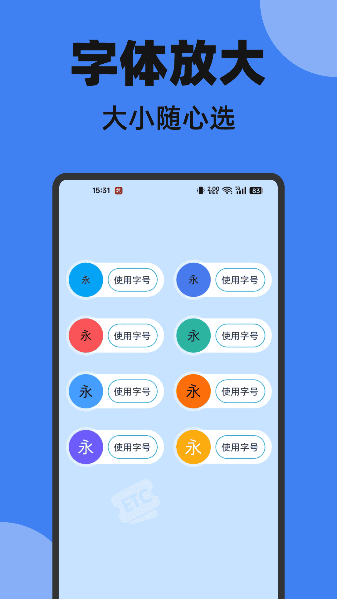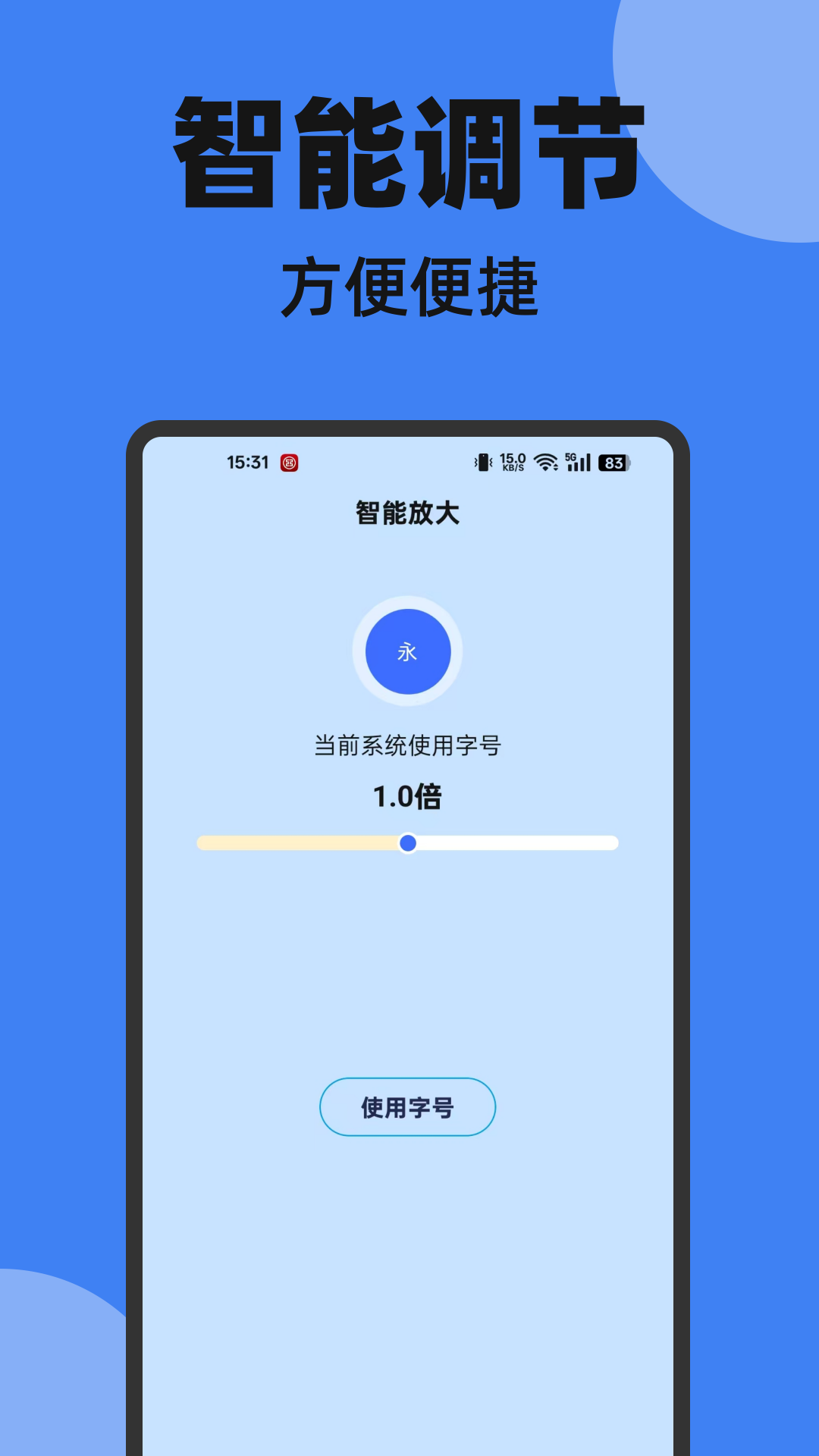 大字体免费设置app下载是一款专注于解决手机屏幕文字显示过小、阅读吃力问题的轻量化字体放大工具软件。它并非简单地全局修改系统字体,而是作为一个辅助阅读层,允许用户在任何界面(如新闻、电子书、社交应用、系统设置)实时、无损地放大屏幕上的文字区域。软件提供从1.2倍到3.0倍甚至更高的多档精细放大比例,用户可通过滑块无极调节或选择预设档位,每次调整都配有清晰的效果预览文本,帮助快速找到最舒适的阅读尺寸。