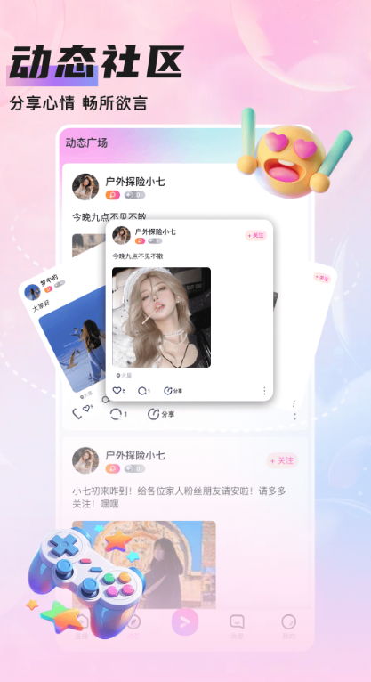 3、在特定兴趣场景中快速找到归属感,让社交从一对一聊天延伸到多维度互动。