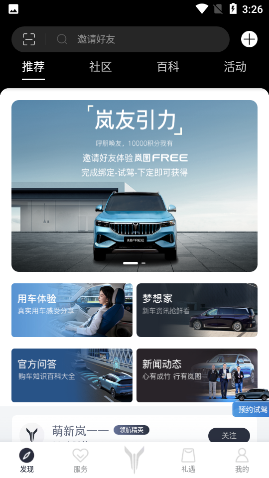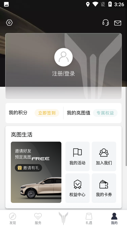 礼遇-赚取岚图积分,遇见岚图生活礼遇。