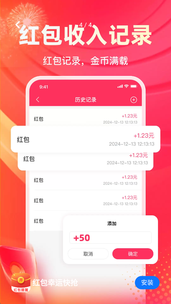 1、在手机应用商店搜索红包幸运快抢app,一键下载安装,即刻开启您的红包幸运之旅。