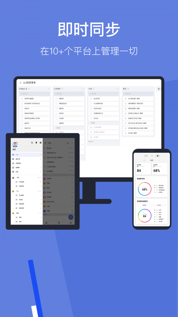 -多平台同步:滴答清单APP在手机、平板、网页等多个设备云同步,随时随地查看日程安排和备忘事项。