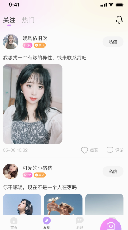 念梦交友app是一款专门为单身用户打造的聊天交友平台,涵盖了多种社交模式,不同的兴趣爱好社区,可以加入自己感兴趣的社区,和相同爱好的朋友们一起互动交流,在互动中去了解每一个人,寻找自己喜欢和适合自己的那一位,支持私线聊天,更快的增进彼此之间的感情!