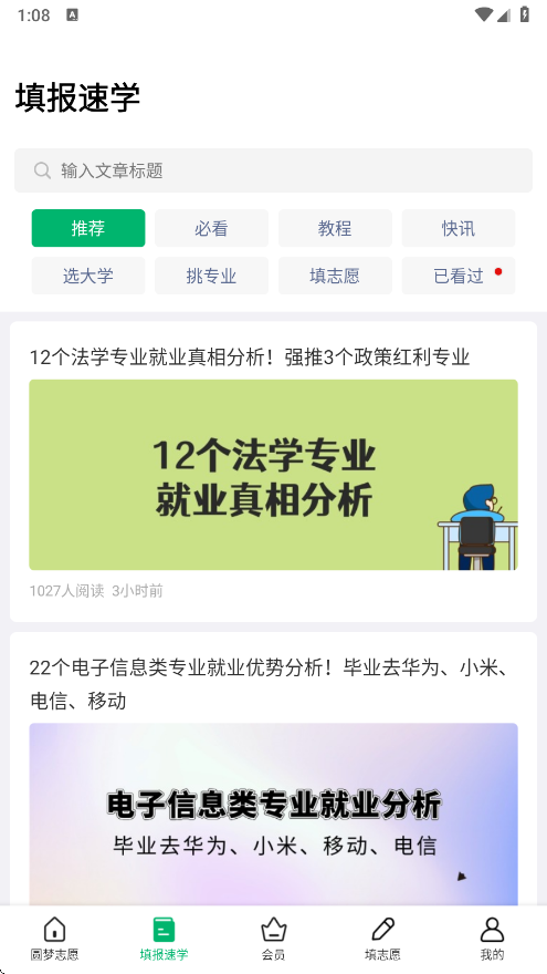 4、可以浏览热门资讯,帮助选择专业