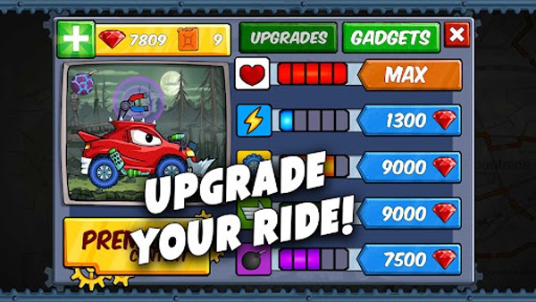 8.点击车库按钮升级汽车以应对后续关卡。