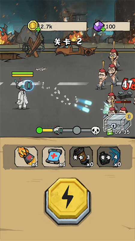 关卡进度挑战:每个关卡设独立进度条,中途出现危险警告预示BOSS来袭,成功击退可领取随机三选一奖励,难度递进合理,目标感明确。