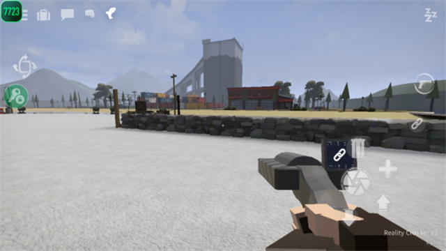 1、玩GoreBox想要拿枪,玩家就必须先找到一把枪,找到枪后需要将准心放到枪上,这时屏幕左边会出现一个手指按钮,按住手指按钮即可拾取。