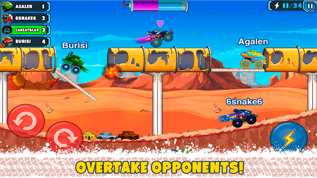 疯狂车吃车4车辆解锁版是一款充满趣味的卡通风格2D横版赛车游戏,在疯狂车吃车4车辆解锁版游戏中,玩家将驾驶造型各异的车辆,在色彩缤纷的赛道上展开一场场欢乐又刺激的追逐竞赛。游戏的核心亮点在于其丰富的车辆系统,解锁版为你提供了所有类型的车辆,从灵巧的小跑车到笨重的大卡车,应有尽有。更重要的是,你可以对每一辆爱车进行深度自定义与改装,更换轮胎、调整悬挂、升级引擎,甚至改变车身颜色与涂装,打造出性能与外观都独一无二的专属座驾。