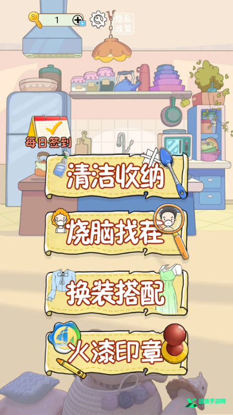 1、在本站下载安装该游戏打开进入,这里有清洁收纳、烧脑找茬、换装搭配和火漆印章等玩法模式。
