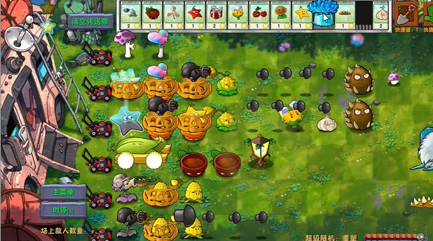 使用樱桃炸弹或仙人掌切换,在究极激光南瓜基础上: