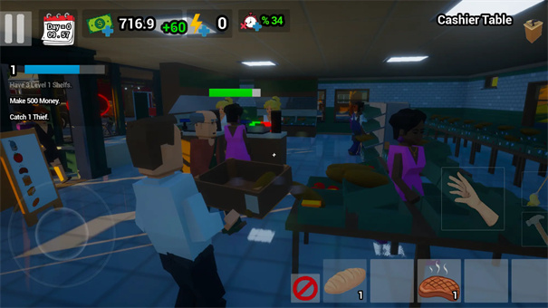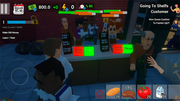 员工团队协作:雇佣收银员分担收银压力,理货员自动补货。员工有工作效率差异,需合理排班与培训。团队管理解放双手,让玩家专注战略扩张,体验从个体户到管理者的转变。