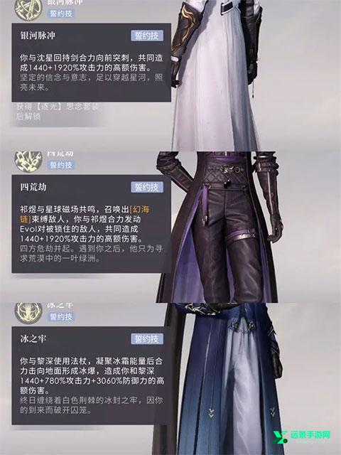 2、神装满配体系,在游戏中后期,大概率围绕着角色的五星日卡来打体系套装的,现在已知五星日卡套装主要就三套,沈星回的逐光套,黎深的永恒套,鱼的深海套,其中星星和鱼的套装都是吃的攻击加成,只有黎深的比较特殊,吃防御加成,而且加成还特别高。所以这也奠定了三个角色的选卡培养基调,星星和鱼吃攻击卡,黎深吃防御卡(游戏内分为三张卡,生命,攻击,防御,详细可点卡的右下角感叹号)。