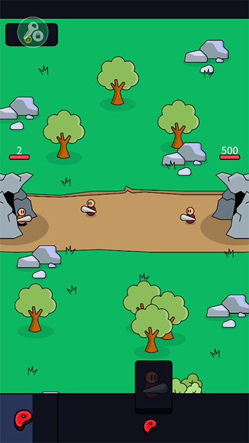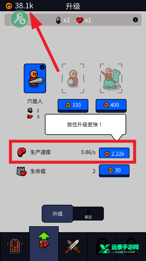 1、游戏中我们需要不断的通过召唤战士来保卫自己的基地,召唤需要食物,食物会自动的增长。