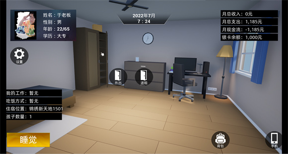牛马简易模拟器手机版是一款十分真实的人生模拟游戏,游戏中玩家将扮演一名刚毕业的大学生,需要从零开始规划自己的职业生涯。游戏以在职场中生存和发展为目标,主要玩法有学习、工作、人脉拓展以及财务投资等多种玩法。总之玩家需要在保证自己生存的同时提升自己。牛马简易模拟器包含从打工到创业的阶段性跨越,并拥有租房、社交、家庭等现实生活场景与事件。