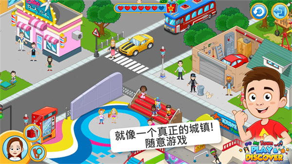 我的城镇探索游戏是My Town系列推出的一款开放式儿童模拟经营游戏。在游戏中,玩家将化身为城镇建设者,自由探索包括学校、医院、商场在内的12个互动场景。与30多个富有个性的NPC建立友谊,通过完成各项任务来解锁新的建筑和装饰。我的城镇探索游戏没有固定的目标,而是鼓励儿童在沙盒环境中充分发挥想象力,创造属于自己的独特城镇故事,这样的游戏内容能够极大的开发孩童的思维能力。