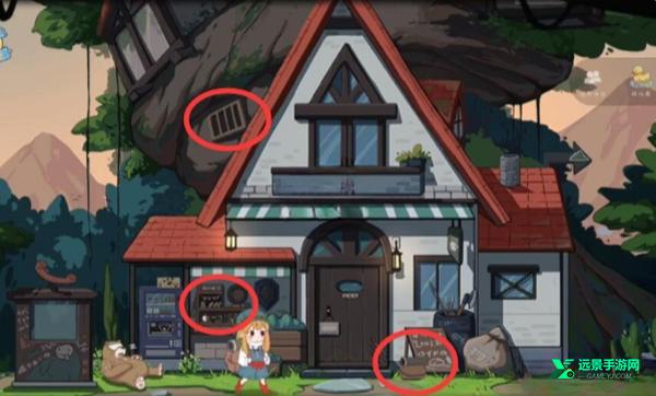 1、这一关的关键性道具比较容易找,如下图三个位置可以找到道具