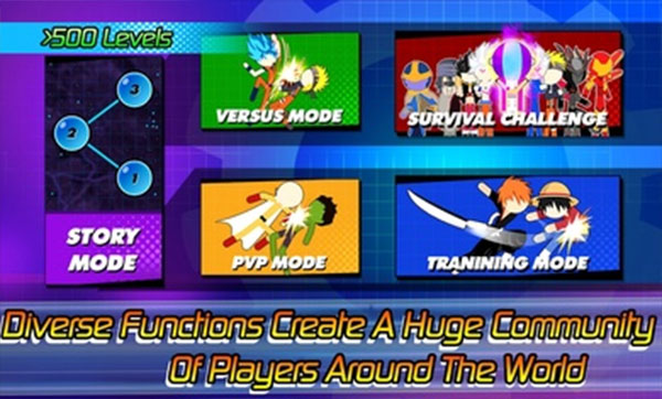 全明星英雄混沌大战中文版是一款集合了超多动漫角色的火柴人1v1格斗游戏。在全明星英雄混沌大战中文版游戏里,你可以看到来自不同动漫作品的人气角色化身成为经典的火柴人形象,在竞技场中展开一场跨越作品界限的终极对决。无论是热血少年漫的主角,还是奇幻异世界的强者,都将在你的指尖操控下施展各自的招牌技能。游戏操作简单易上手,通过虚拟摇杆和技能按键就能打出华丽的连招,但想要精通每个角色的特性则需要一番练习。