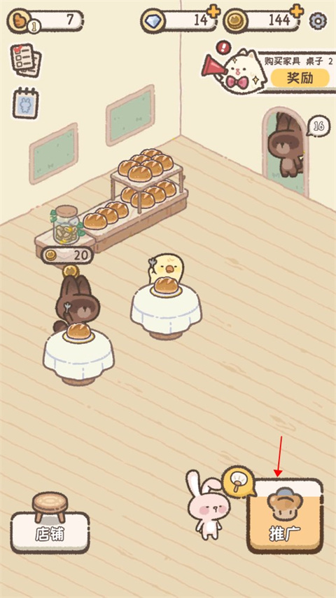 1、点击小扇子,用面包的香味招揽更多的客人