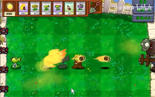 每有一个监工在豌豆射手左侧,豌豆射手会额外发射两颗豌豆。