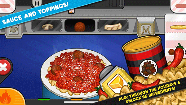 您将需要点菜,煮面和搅拌面条,然后倒入美味的酱汁来制作出完美的意大利面!在每个意大利面上添加奶昔和浇头,然后以新鲜出炉的面包作为副菜。在假期期间,为饥饿的顾客提供时令佳肴,并在Pastaria解锁全新的Daily Specials,一路过关斩将!