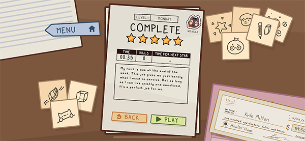 游戏不仅有着十分精致的卡通游戏画风以及细节满满的办公室场景设计,还有十分有趣新颖的潜行玩法,很是吸引玩家。是一款十分有趣且带有黑色幽默的潜行动作游戏。