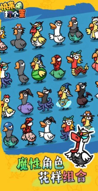 快来打个蛋手机版是一款竖屏的休闲卡通风格的肉鸽割草手游,游戏中的角色采用鹅鸭杀中的角色形象,对于鹅鸭杀玩家来说会有非常亲切的感觉,每一只鸭子角色都有其独特的技能。在快来打个蛋手游中,你将操控鸭子来进行关卡闯关,在关卡挑战中你每次消灭敌人都会获得经验,当你提升等级后就可以学习新的技能,游戏中拥有丰富的技能提供给你选择可以创作多种肉鸽流派玩法。