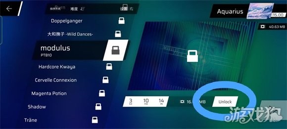 3、如果是Single章节里面的歌曲锁住的话,需要购买歌曲,点击Unlock即可购买当前歌曲。如果是别的章节锁住的话,需要完成一定条件才可以解锁。比如Chapter 5:在Legacy章节把任意六首歌的任意难度打到880000分以上(同一首歌的不同难度算一个)。Chapter 6:在Chapter 5把Leave All Behind的任意难度打到880000分以上。Chapter 7:在Chapter 6把lgallta的任意难度打到880000分以上。Chapter 8 & Side Story 2:在Chapter 7把Rrhar'il的任意难度打到880000分以上。Side Story 3:在Chapter 6把NO ONE YES MAN的任意难度打到920000分以上。