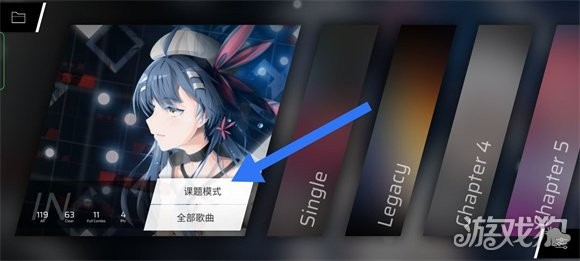 2、课题模式需要通过主线第八章节,并且观看制作人名单后才可解锁课题模式。课题模式可以有效提升玩家的游戏水平,玩家可以任意选择三首歌曲进行游玩,而通过课题模式游玩和普通模式游玩有以下不同:去除连击分和判定变得更加严格。
