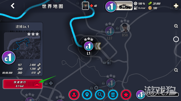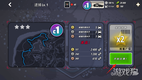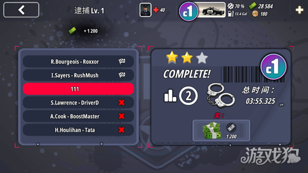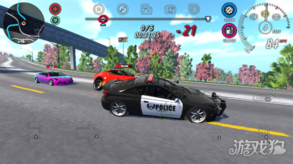 9、玩家需要驾驶警车不断的碰撞罪犯的车辆,选哟注意的是,屏幕右上角的车辆损伤以及油量,记得修复并添加到满值。