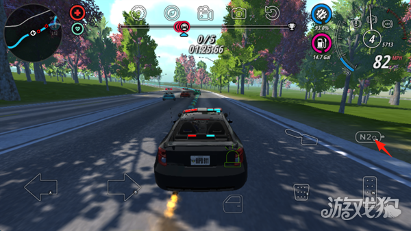 11、当与罪犯距离过远,可以点击屏幕右侧的“N2o”,进行氮气加速。